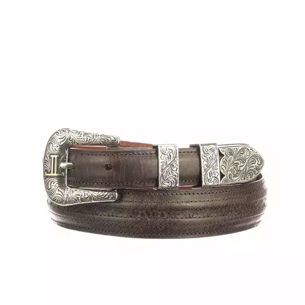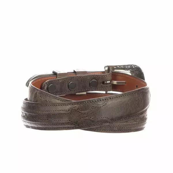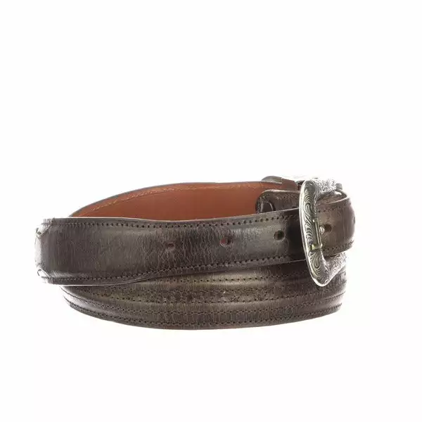 Lucchese men’s belt made with goat leather. With its silver plated buckle and hobby stitching, the belt can be paired with a suit or jeans. Handmade in Texas. Tapered down to 1 inch Hobby stitching Removable buckle *Color may vary slightly due to hand finishing techniques.