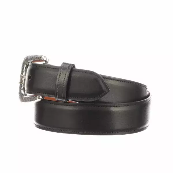 Lucchese men’s belt made with baby buffalo leather. Lucchese craftsmen use a unique polish method that create different hues and add texture to the leather, giving it a vintage look. Made with buffalo leather, this belt is thick and has good durability. Its Southwest buckle add style and versatility to this classic men’s belt. Handmade in Texas. 1.5″ wide Removable buckle