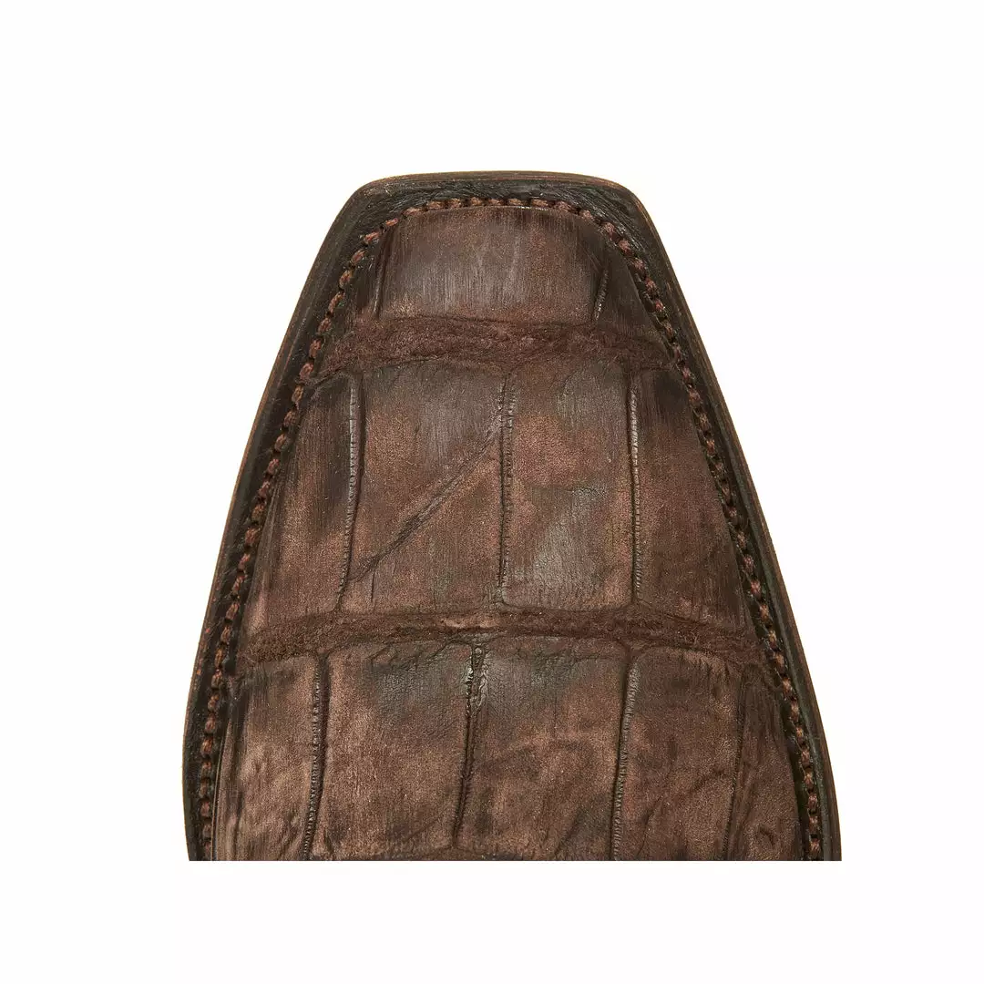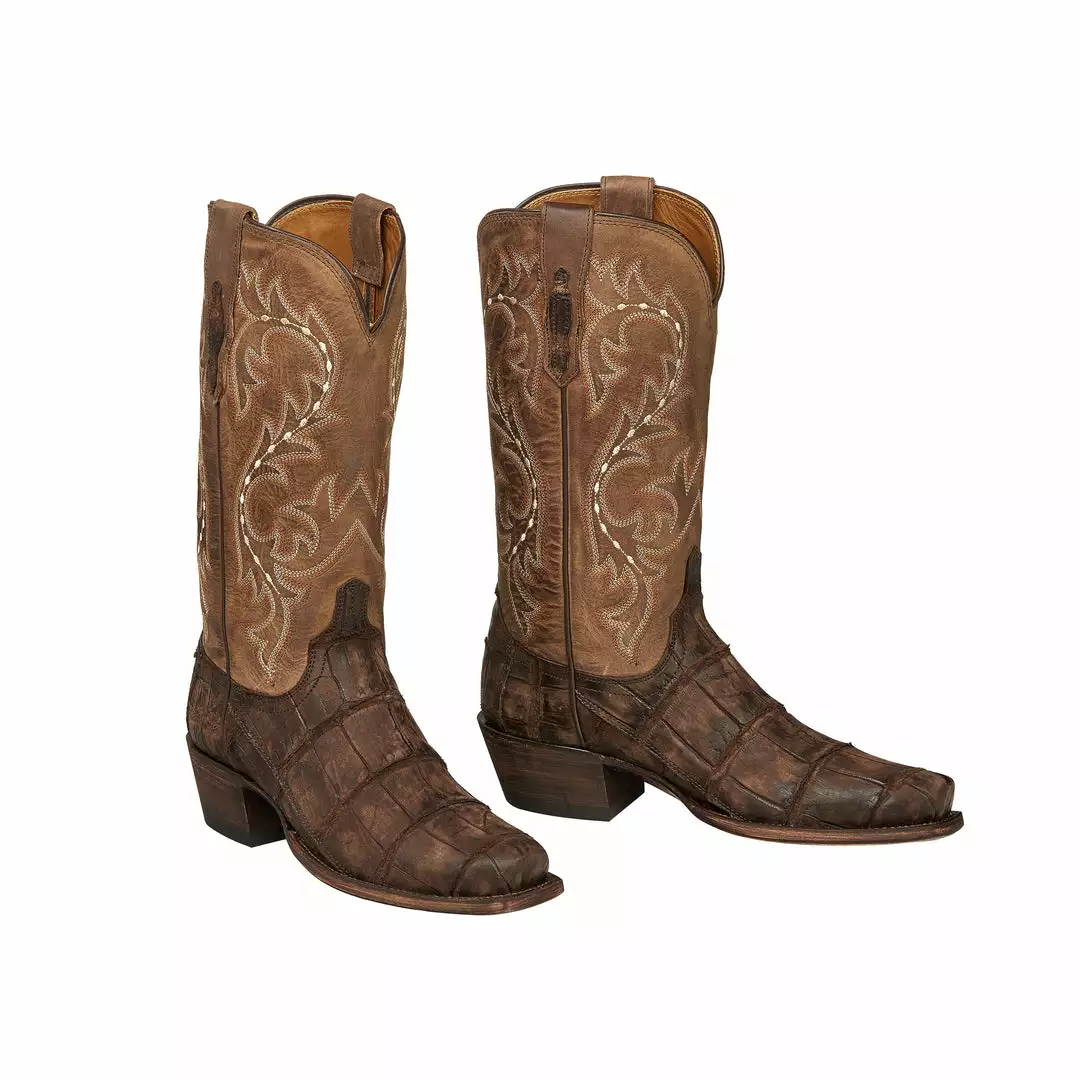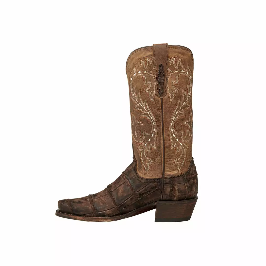 Burke is an exotic, distressed Western boot crafted from Lucchese’s own giant American alligator.