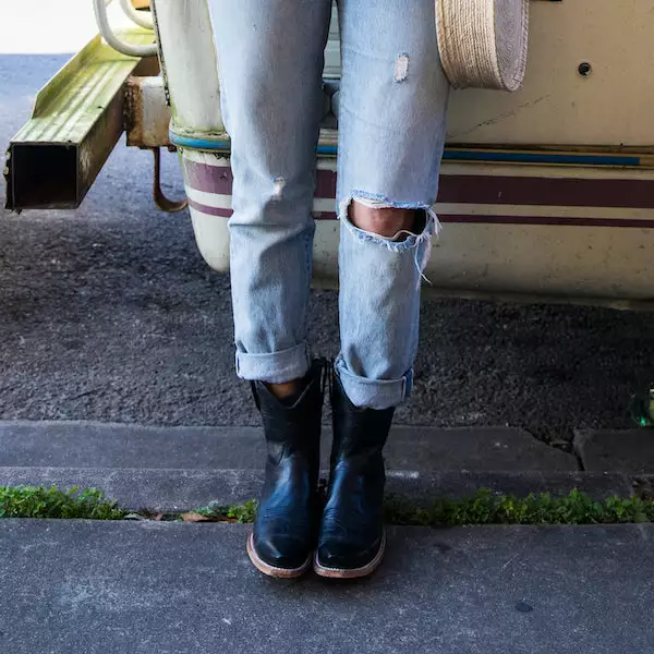 Gaby is a 7″ western shortie. This simple pull-on boot features a tonal, mirrored-L logo on the back, a Star toe medallion on the vamp and a rounded toe for a kick of style.