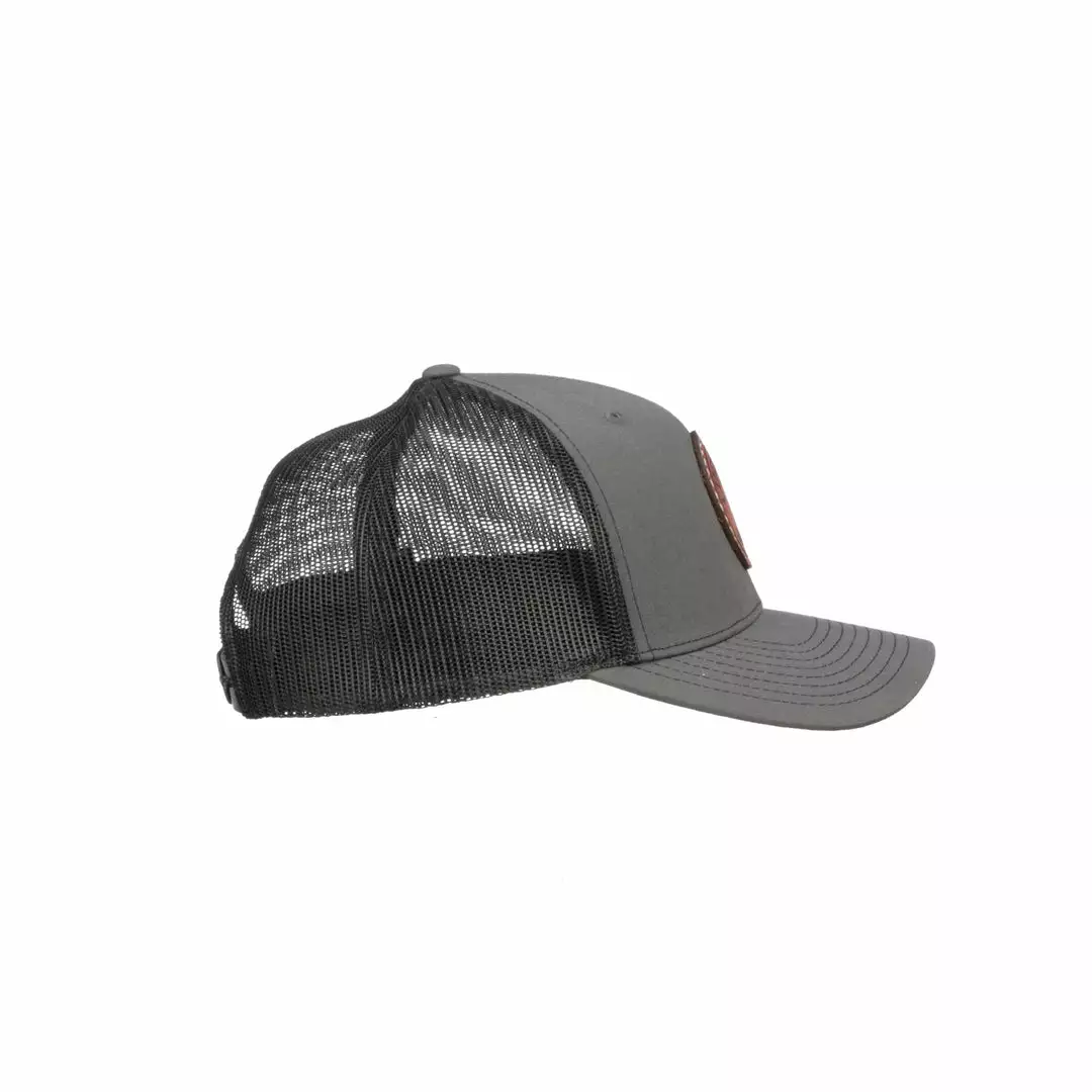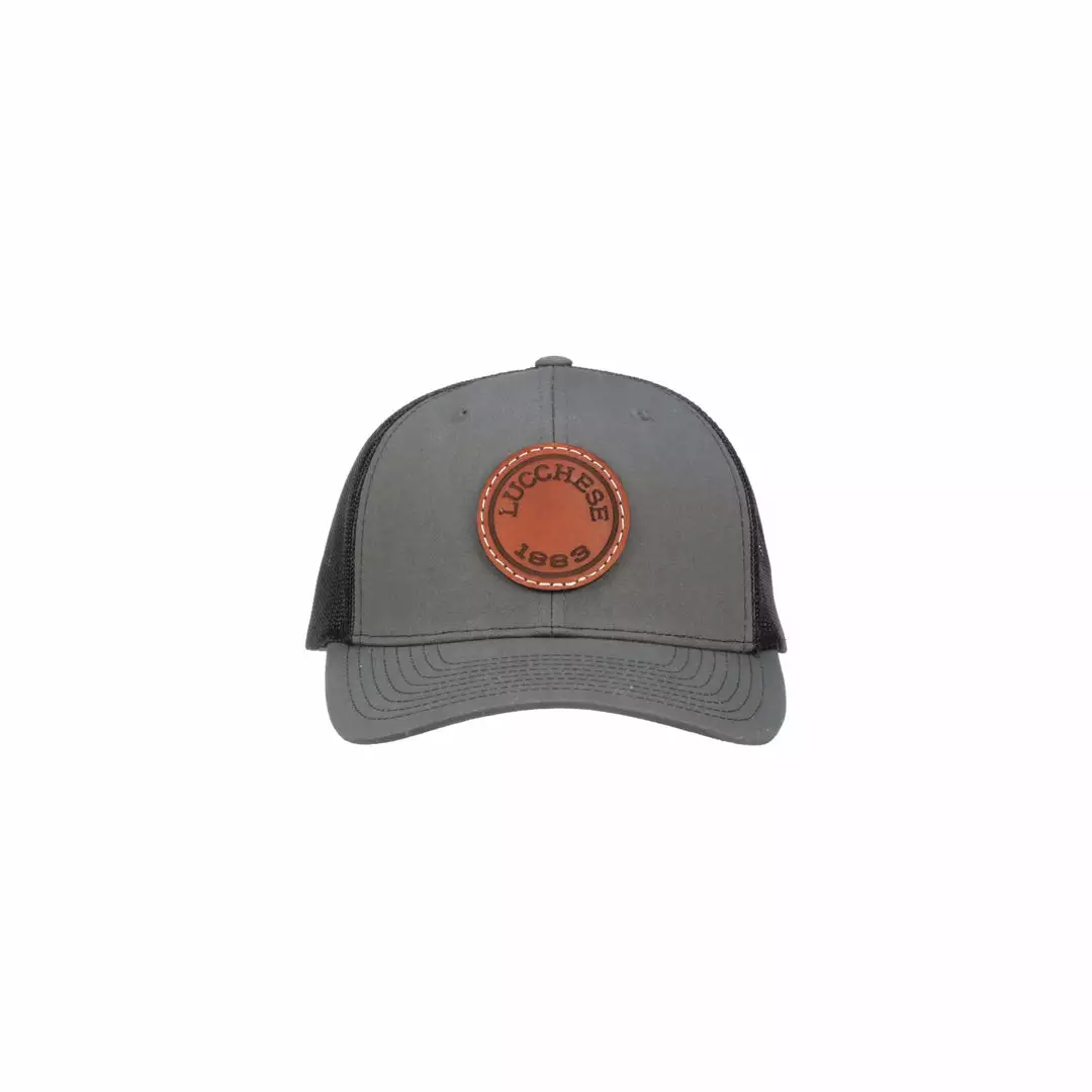 The Lucchese Leather Patch Cap has breathable mesh and an adjustable snap closure. Lucchese Bootmaker logo patch on front. One size fits most.
