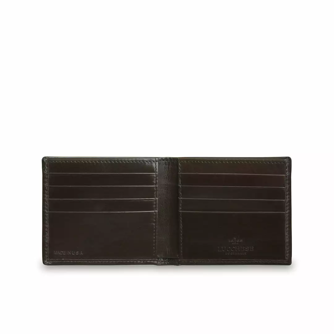 Our 8-card hipster wallet is handcrafted with luxurious calfskin leather. Its slim and smooth construction provides enhanced versatility, making it an effortless fit for either your front, back or coat pocket. The Lucchese logo is neatly stamped on the interior, allowing for a subtle and sleek exterior finish. Additional Features: Interior currency pouch Eight card slots Two interior slip pockets Handmade in USA 4.25″ W x 3.75″ H x .5″ D