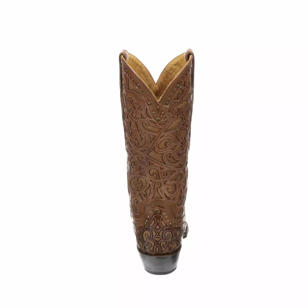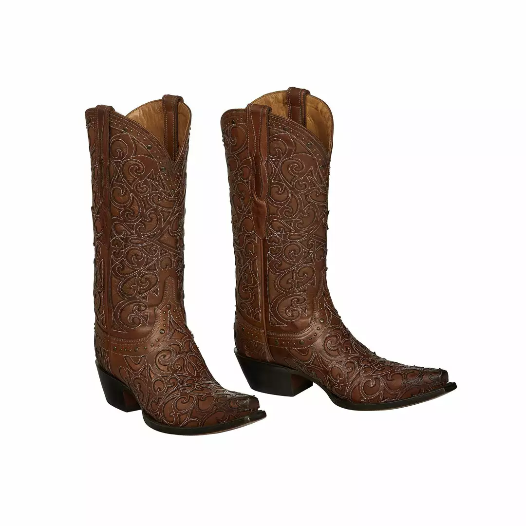 Sierra is a traditional western boot with elaborate spirals laser cut onto the quarter and vamp.