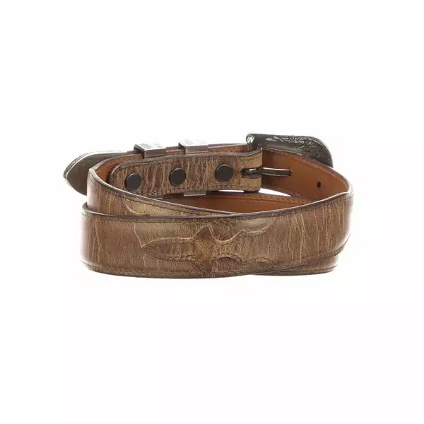Lucchese’s smooth leather belt made with either Mad Dog or Brush Off Goat. The belt’s goat leather is complemented by an ornate silver plated buckle giving it the ultimate Western touch, making it versatile, handsome and stylish. This belt was designed to be worn with matching goat boots, but can also be paired with jeans or a suit. Handmade in Texas. 1.25″ tapered down to 1″ Silver plated tip Removable buckle