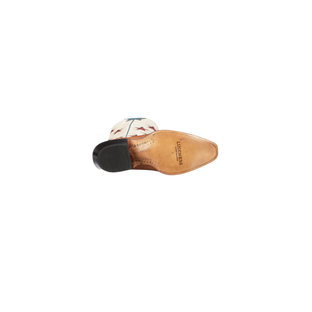 Estrella means “star” in Spanish, and this style features just that inlaid delicately on the quarters. The slightly shorter shaft and pointed toe make this boot the star of the show. Full single stitch welt construction. Leather sole. Handmade in Mexico.