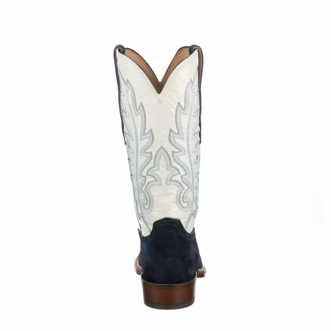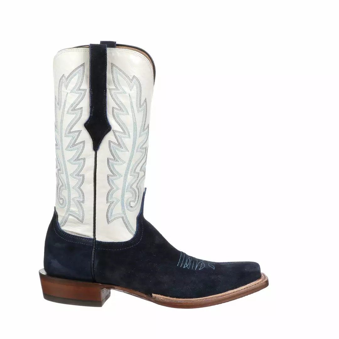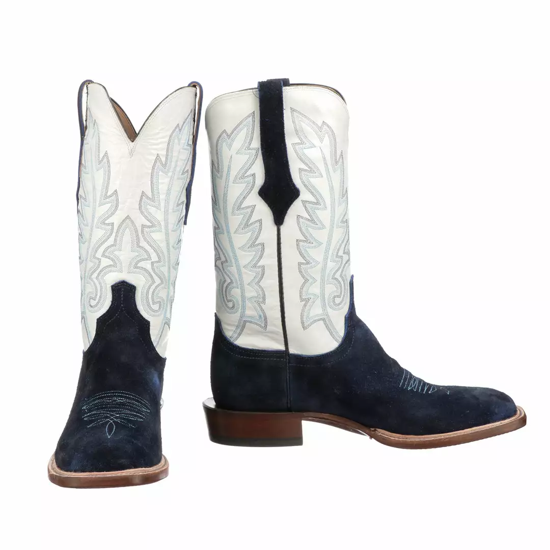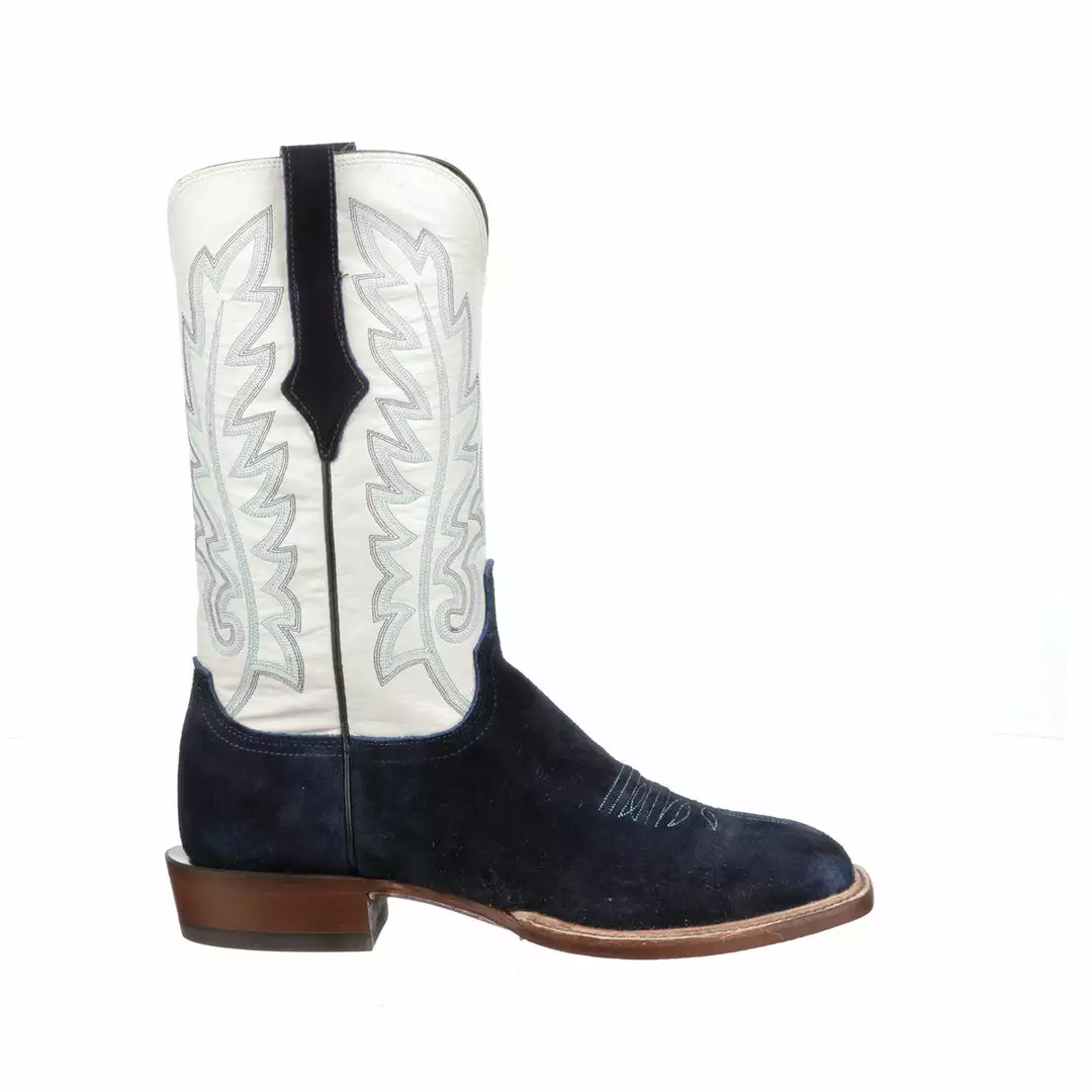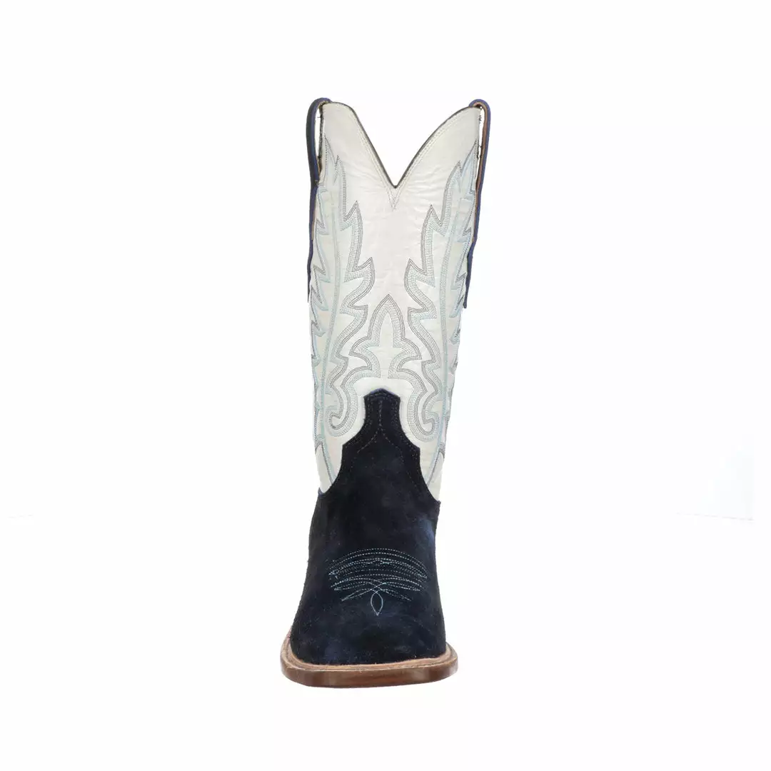 Silo is a modern horseman boot crafted from rich suede. It has a single natural storm welt detail and contrasting quarter panels. Handmade in Texas.