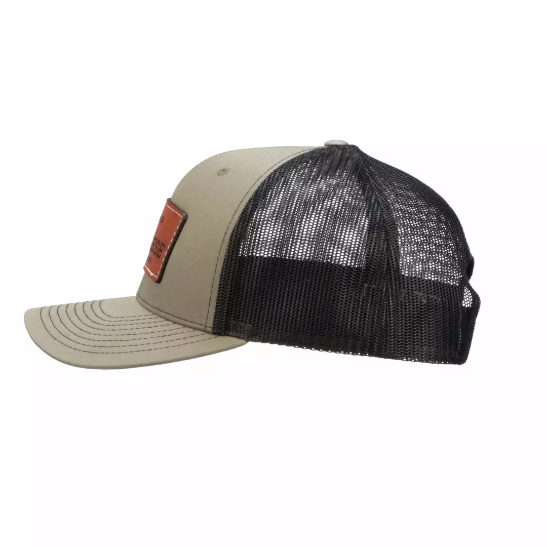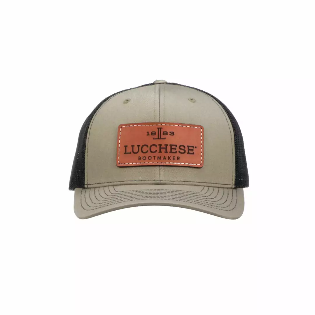 The Lucchese Leather Patch Cap has breathable mesh and an adjustable snap closure. Lucchese Bootmaker logo patch on front. One size fits most.