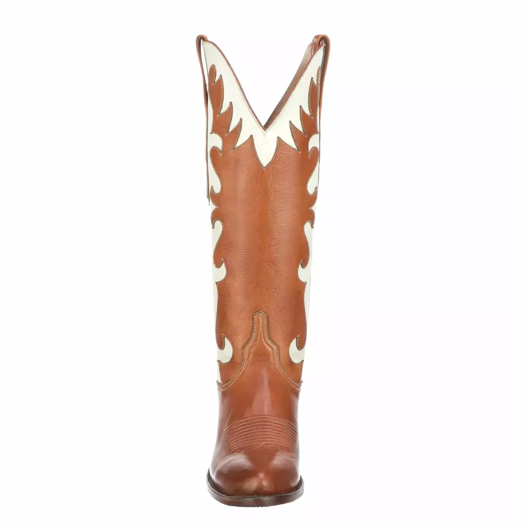 Handmade in Texas, Tennessean sings loud to those who admire breathtaking leather inlays with a striking Crispen toe medallion stitch. This style pays tribute to Nashville and to those musicians whoโve paved the way for artist like Stephanie.